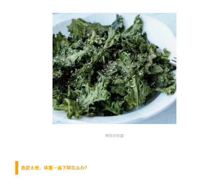 也可以烤蔬菜,比如烤羽衣甘蓝叶子,脂肪和热量就更低了,即使吃一大碗也没多少热量。但要注意的是,孩子在治疗过程中口腔黏膜比较脆弱,脆脆的片状食物容易划破口腔,所以还是尽量不要吃这种特别脆脆的东西。