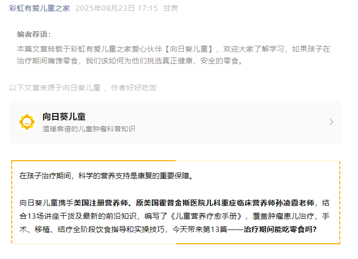 希望这些零食的点子可以给到家长们一些启发,祝愿孩子们在治疗期间能吃好,治疗顺利。