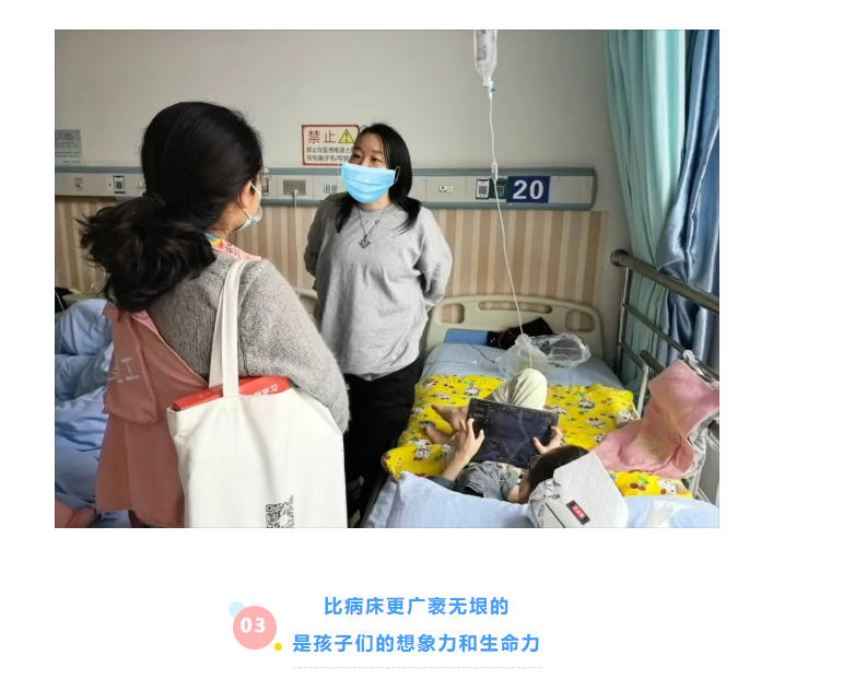 原来,孩子们除了在做与病魔勇敢对抗的坚强宝宝、被家人无限心疼的生病的孩子,还可以做一个主动游戏、主动创造的人。